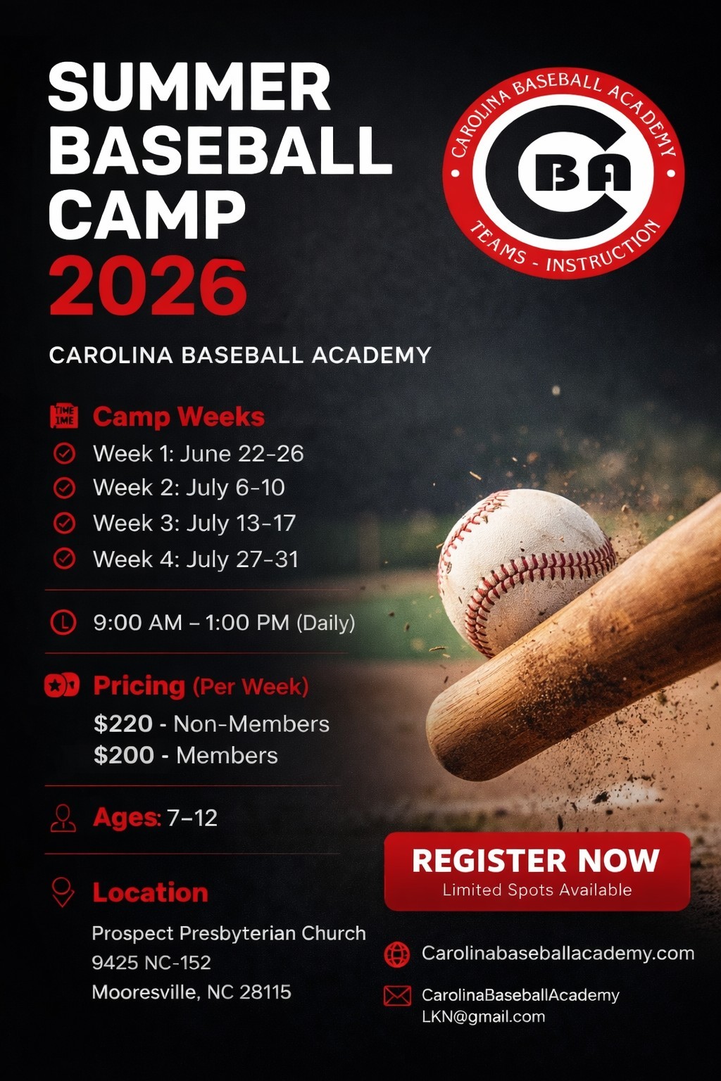 Welcome! We're excited to begin building out your new site! Please take a moment and register an account by clicking Sign Up. Please email CarolinaBaseballAcademyLKN@gmail.com with questions.